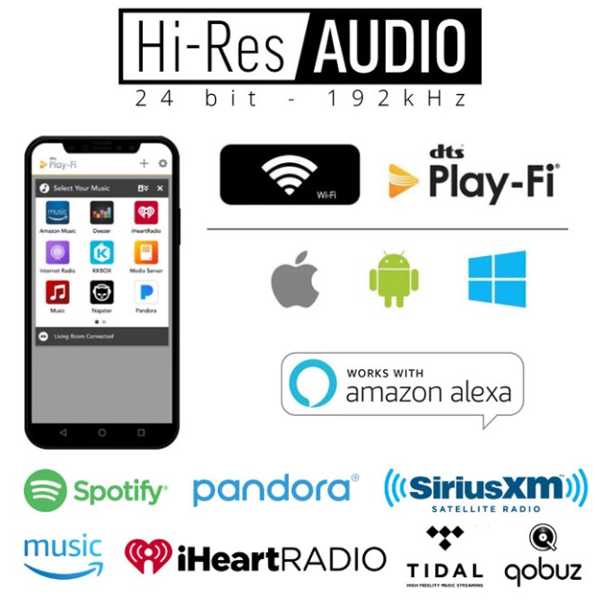 Advanced control via any iOS, Android or Windows device with the DTS Play-FiI App over WiFi or voice control via Amazon Alexa.