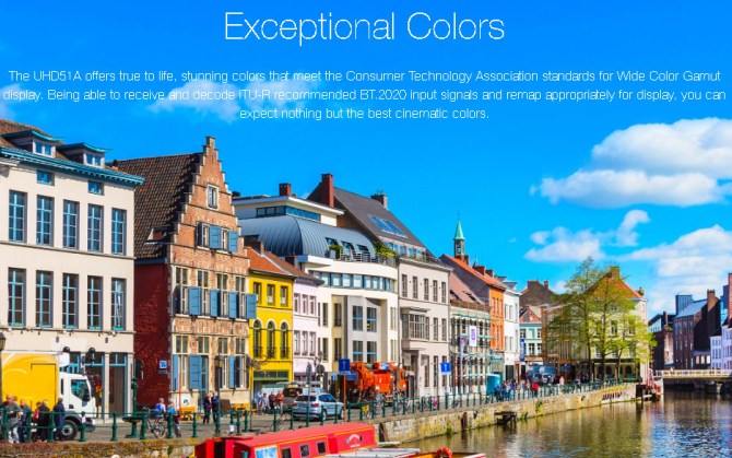 BT.2020, HDR signals are mapped using REC.2020 tone mapping and provides coverage for REC.709, DCI-P3 and a wide coverage color gamut.