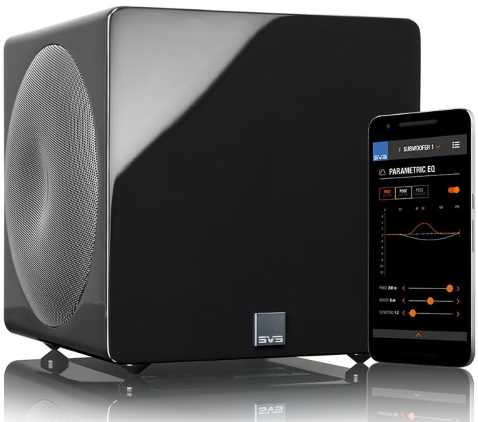 A 50 MHz Analog Devices DSP enables sophisticated control and custom frequency response curves for optimized real-world output and acoustically tuned room gain. It also enables advanced tuning and control via the SVS subwoofer DSP smartphone app.