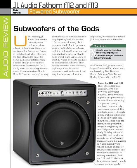 “The JL Audio Fathom is of reference quality and a benchmark by which all other subwoofers can be judged.”
