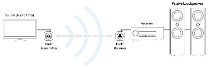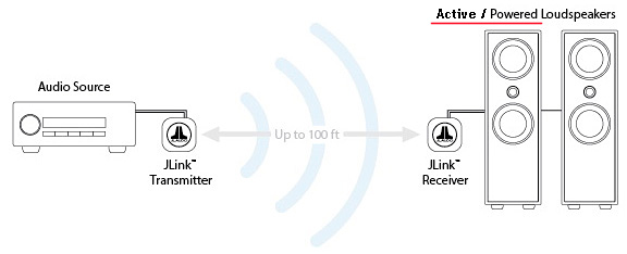 - JLINK™ TRX / RX kit connects two line-level audio devices wirelessly