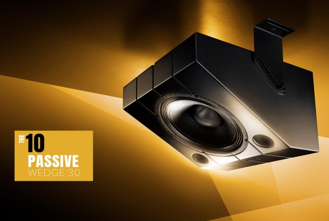 THE10 PASSIVE WEDGE 30 is a pre-angled version of THE10 PASSIVE ON WALL, very compact two-way passive loudspeaker system.
