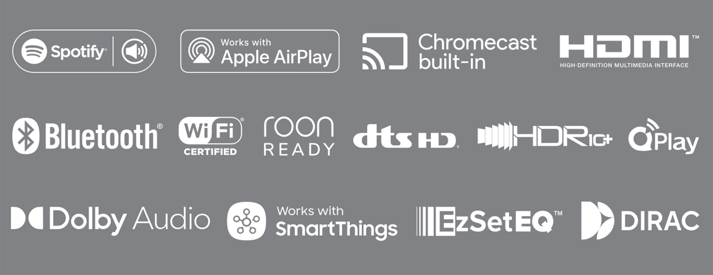 8K HDMI specifications and native 9-channel decoding of immersive audio from Dolby Atmos and DTS:X for the ultimate home cinema experience.