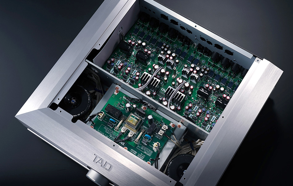 The pursuit of perfectly symmetrical design does not stop there – TAD have gone so far to lay out 2 power transformers, the chassis construction and rear-panel jacks symmetrically to achieve optimum weight and vibration balances!