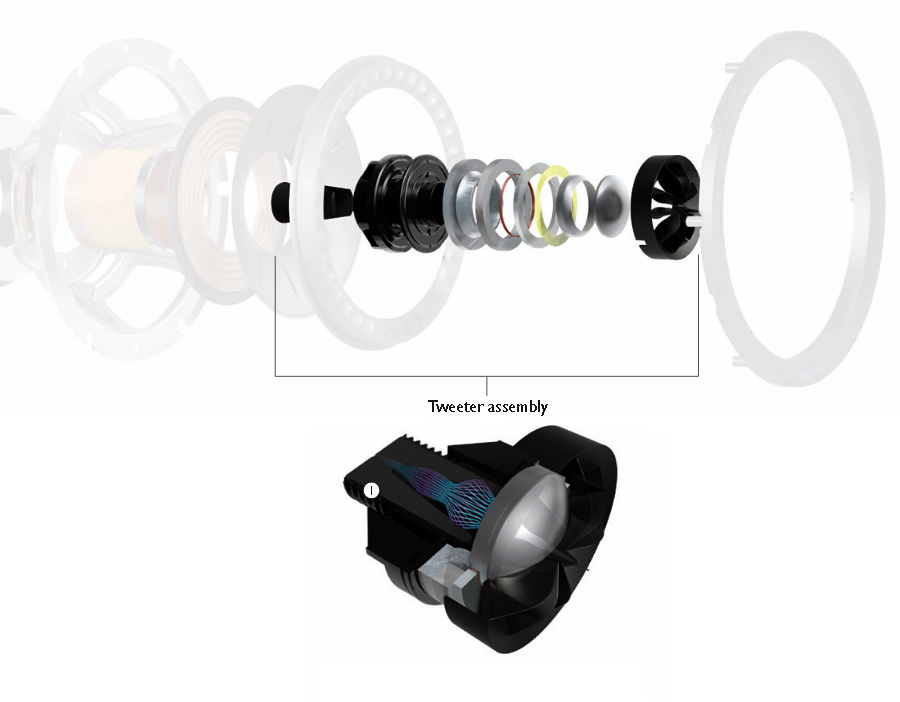 JBL engineering crystal-clear horn-loaded tweeter of HDI waveguide design for rich, lively and accurate to a fault.